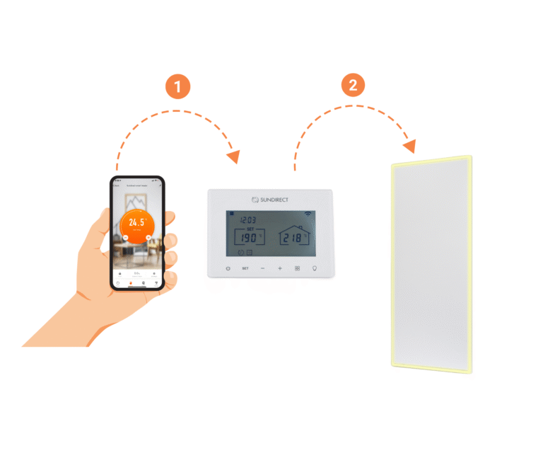 Every Lux-Plus panel includes a built-in thermostat receiver for smart wireless control. Choose from Sundirect’s dedicated Lux controllers: