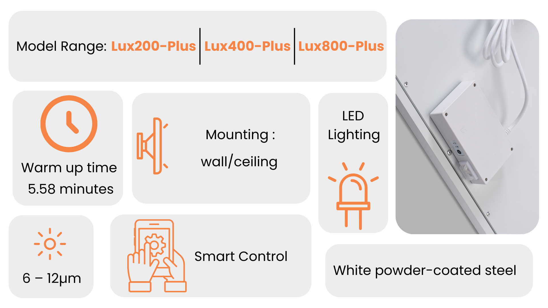 Looking for a heating and lighting solution tailored to your needs? Explore our Lux Plus Infrared Panel Heater range and discover the perfect fit for every room, building, or business.