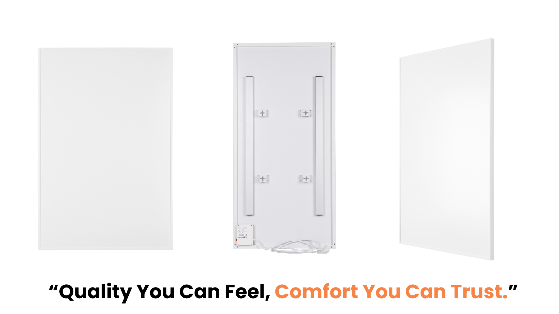Far infrared is especially gentle and effective. It penetrates just under the skin to provide a deep, lasting warmth that feels natural, comfortable, and efficient. It’s completely silent, safe, and perfect for both homes and commercial settings.