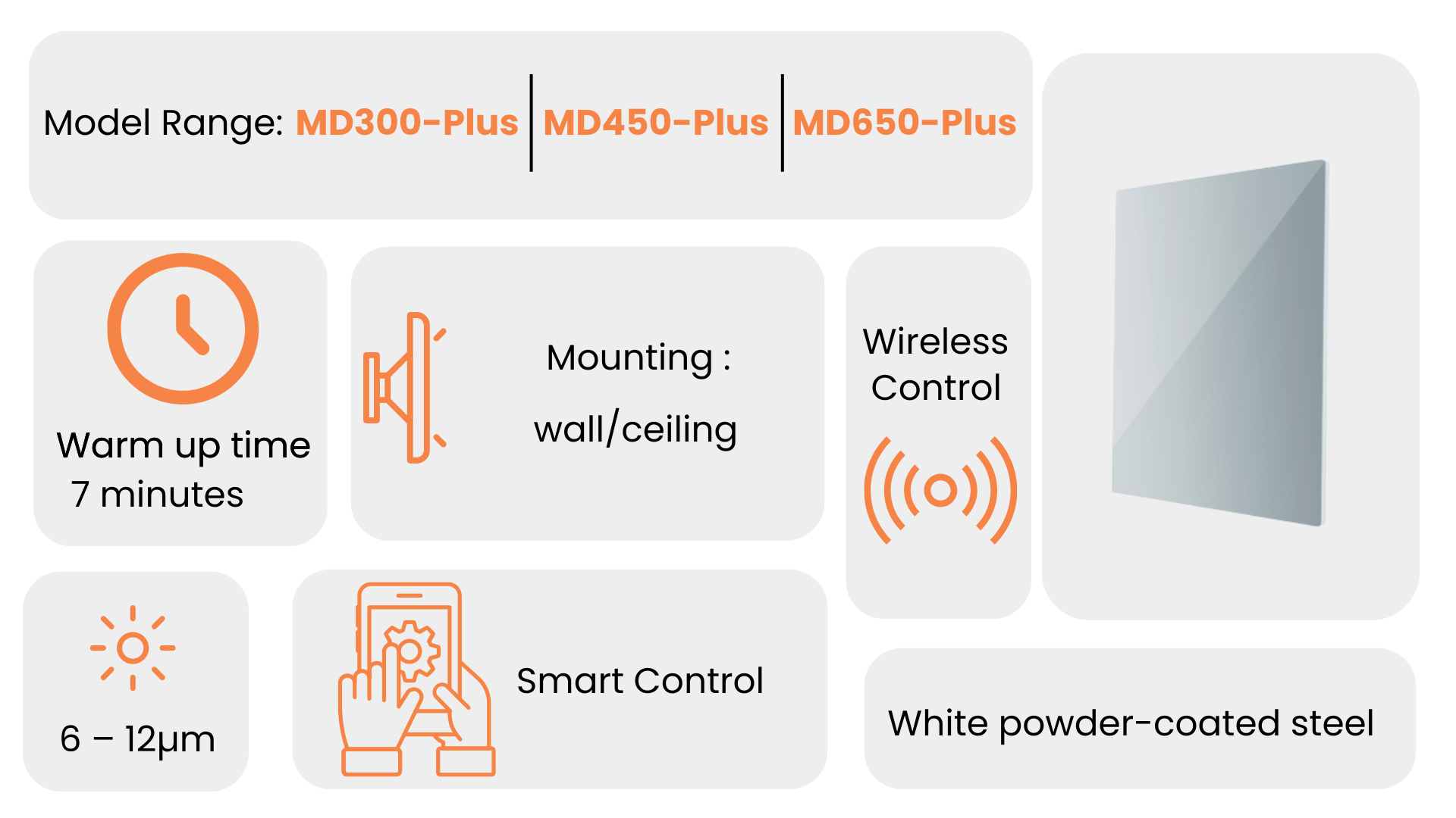 As with all Sundirect panels, the MD-Plus runs silently, odour-free, and requires zero maintenance. With no moving parts, fans, or filters, it offers over 100,000 hours of clean operation, ensuring both comfort and cost-effectiveness.