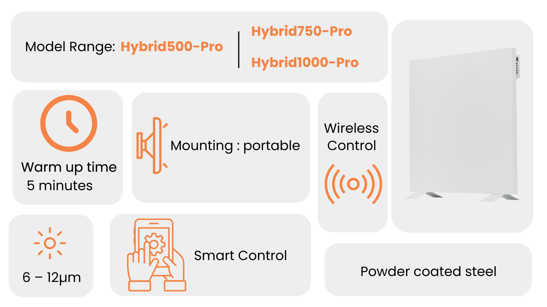 Looking for a Portable and high-performance heating solution? Explore the Sundirect Smart Hybrid Infrared Heater – Hybrid-Pro  range and choose the perfect model for your home, business, or workspace.